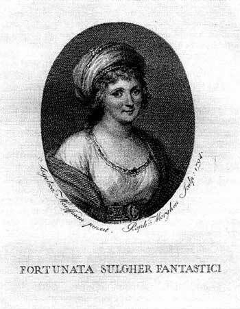 Fortunata Sulgher Fantastici was born in Livorno on February 27, 1755, to Elisabetta Angeli from Pisa and Francesco Sulgher from Livorno. She demonstrated remarkable poetic talent from an early age, beginning to improvise verses at just ten years old under the initial guidance of Doctor Loggia. Although her parents could not provide her with renowned teachers, by age thirteen she was already composing her own poetry. Her youthful improvisations gained early recognition, with contemporary poet Pentolini celebrating her precocious talent.